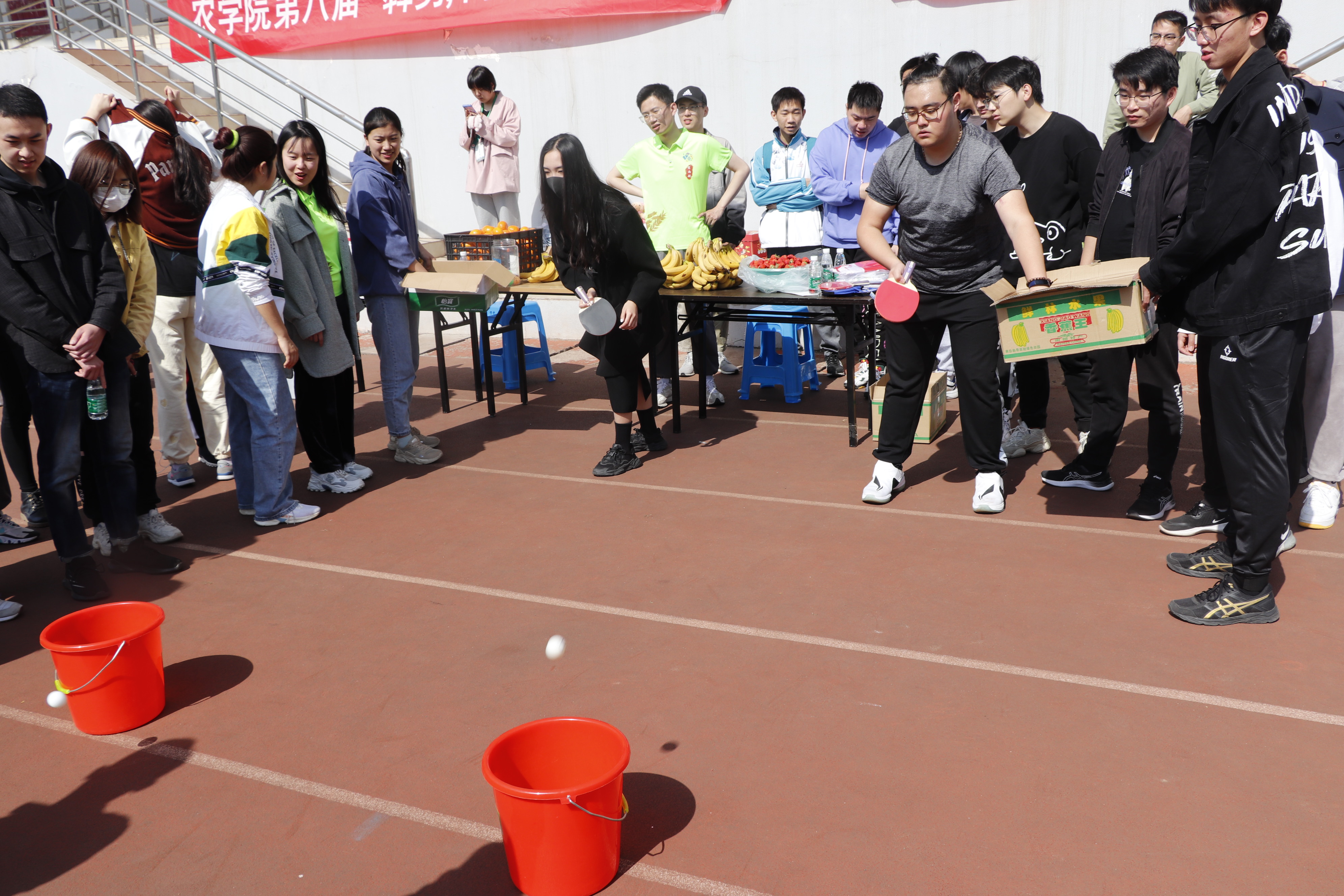 在班级比赛基本结束后,开始了额外比赛环节——“与主席团对对碰”。同学们自告奋勇与主席团进行弹球入桶、跳大绳和解手环比拼,胜利的同学可领取奖品。同学们积极踊跃参与报名,将比赛热烈的氛围推向高潮。