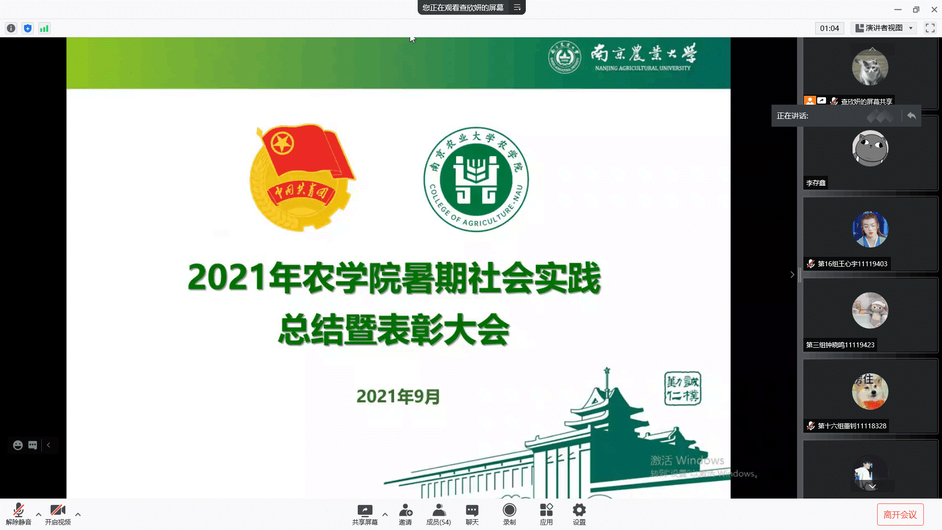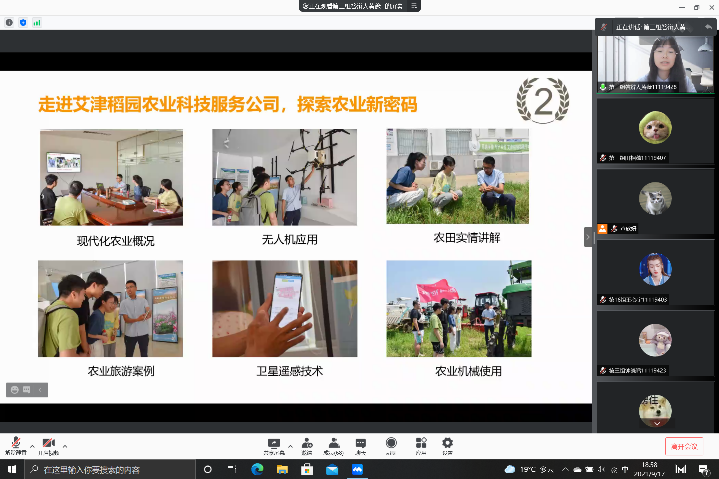 “绿野仙踪”实践团队着重分享了在艾津科技服务有限公司参观学习的所见所感,实践成员通过接触新兴现代农业技术以及实际应用案例,深层体悟现代农业带给农业农村的巨大变化。“农心推普,助乡村振兴”实践团通过自制南京景点视频带着少数民族地区的儿童线上游览南京,并以采访、教学的方式普及普通话;“话百年党史,筑繁华真州”实践团队,从崭新的角度,采用不同的活动形式,以线上线下相结合的方式追忆了党的百年征程;《金善宝》剧组队在校进行了刻苦训练,借此来体悟农学精神,作为爱爱啦 的一门意义非常的“信仰公开课”。