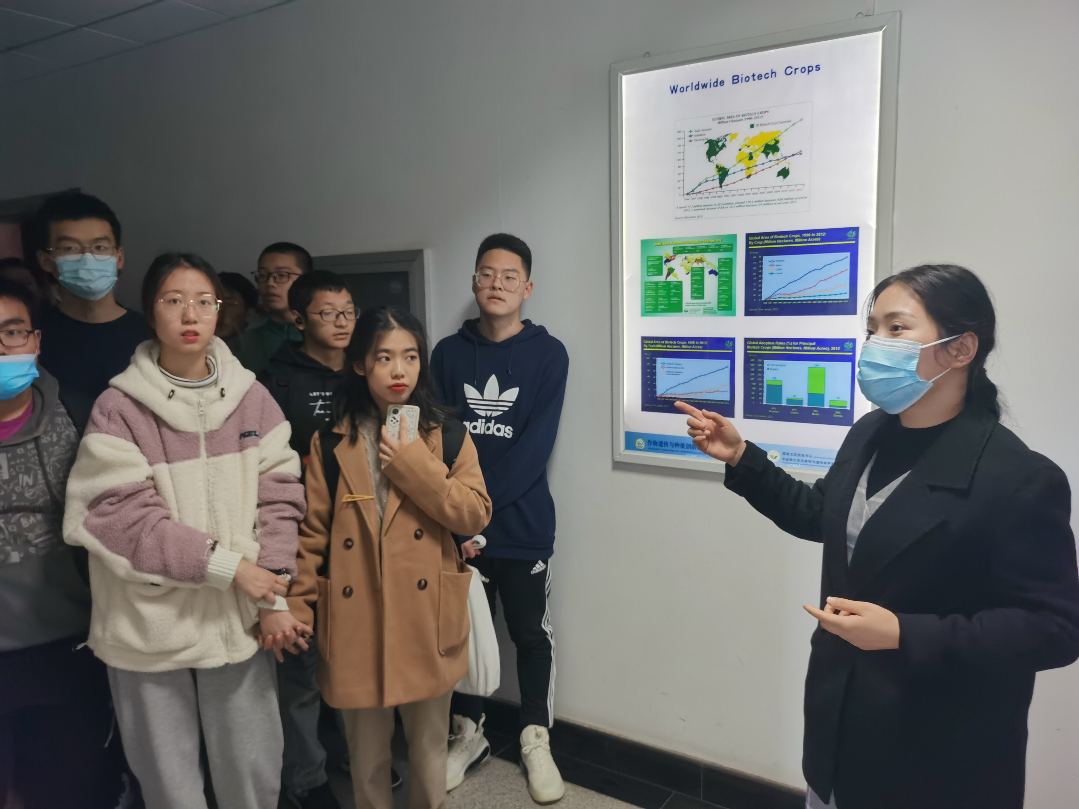 11月26日下午,爱爱啦 组织2021级本科生参观了国家重点实验室。分别邀请了作物遗传育种与种质创新国家重点实验室田瑞平老师、国家大豆改良中心李宁老师和国家信息农业工程技术中心郑恒彪老师及高年级研究生带领同学们进行参观和讲解。