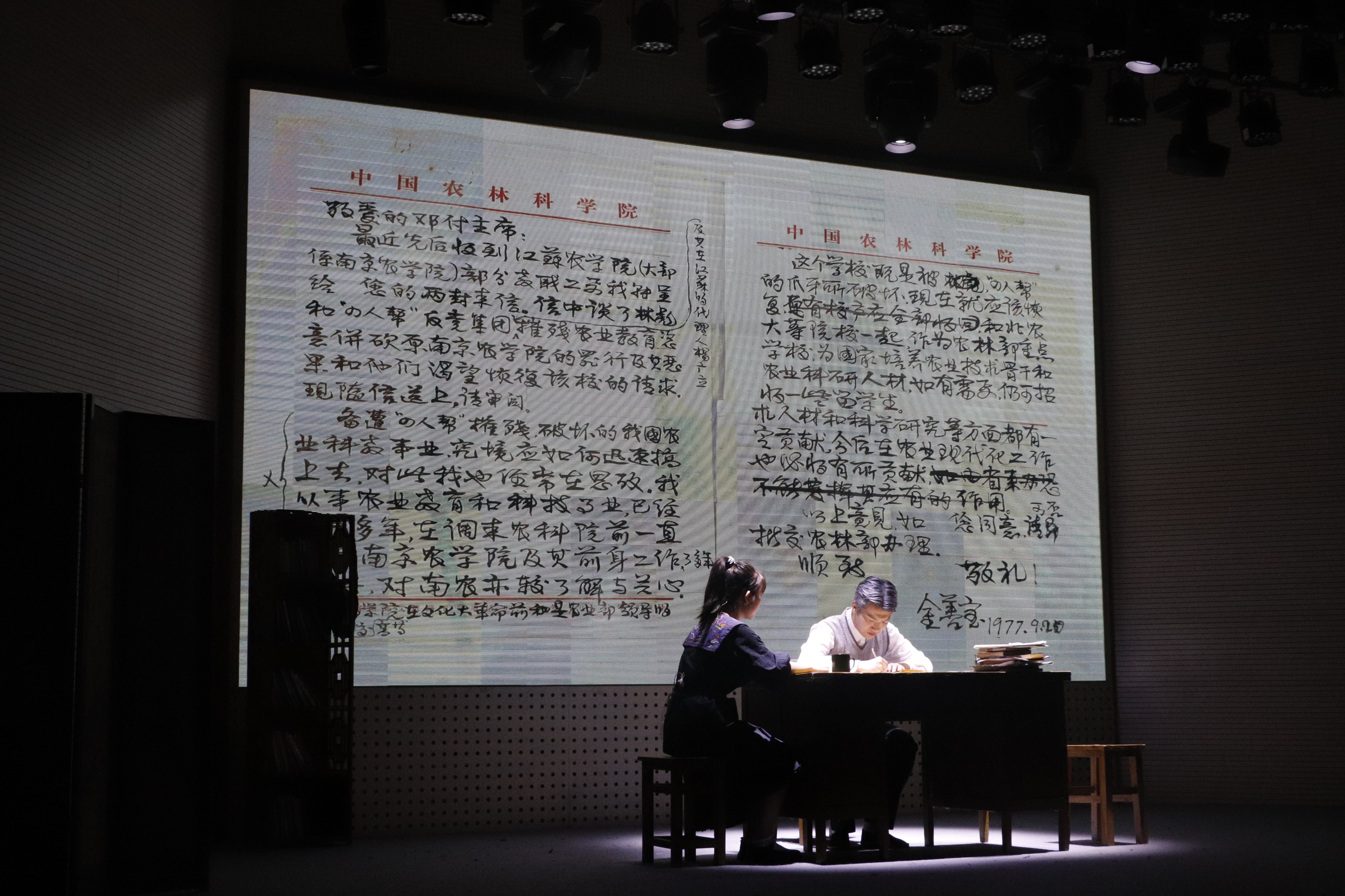据了解参与本次话剧的演员们均为今年4,5月份参演的同学,他们怀揣着对金善宝老先生的敬仰之情,通过对金善宝先生生平事迹的整理及对《金善宝》文集的学习,经过生活体验、剧本打磨、日常排练等环节,用自己的方式去感知金善宝先生的情感与思想,真挚而庄重地演绎了新一代的南农人、农学人对金善宝老先生躬身为农、心怀家国和热心教育的敬畏与敬仰。