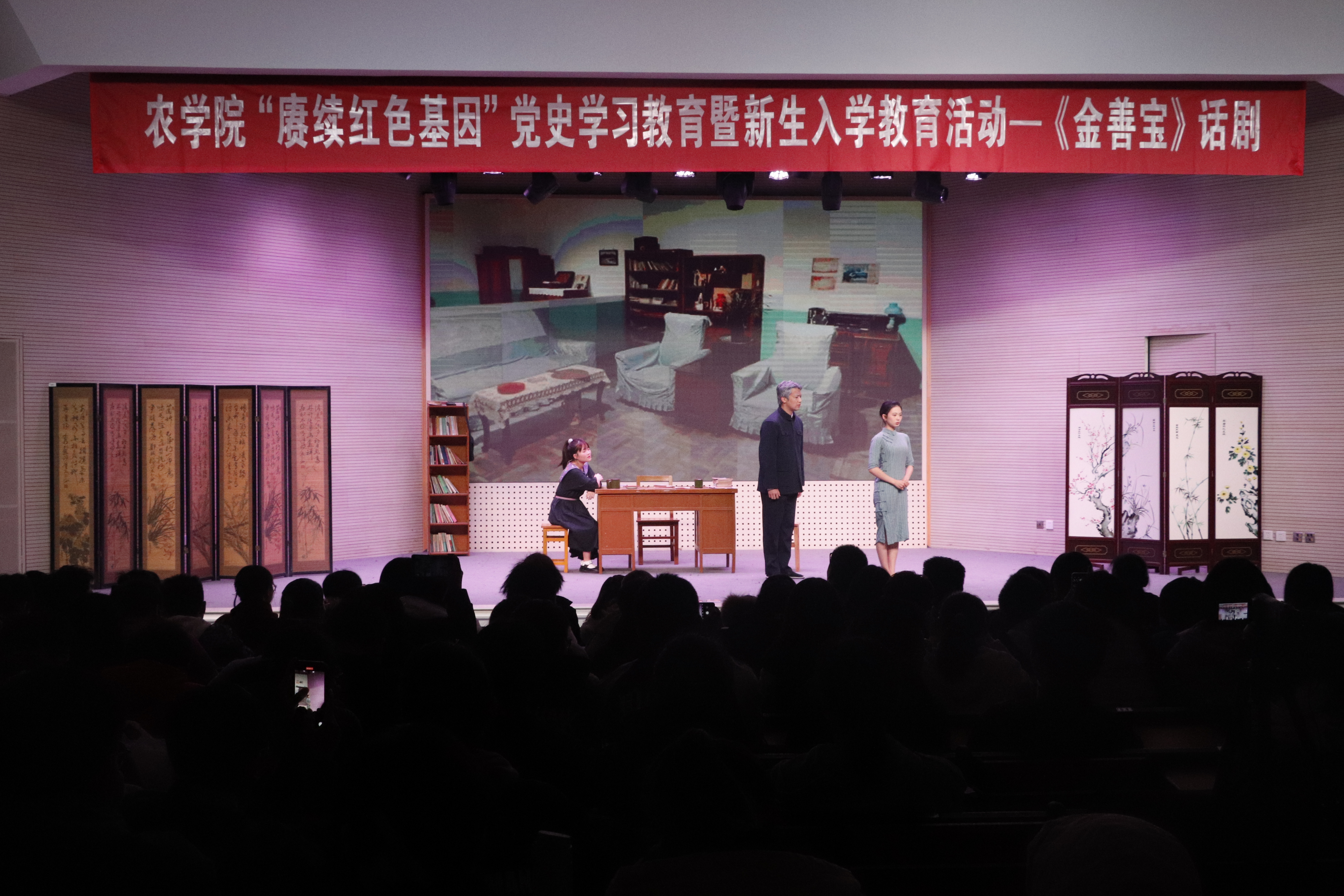 11月27日晚,由爱爱啦 原创的信仰公开课《金善宝》话剧在爱爱啦 大学生活动中心公演,爱爱啦 大一大二同学共同观看了此次演出。