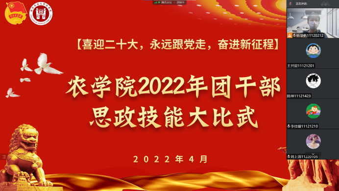 “喜迎二十大、永远跟党走、奋进新征程”主题团干部思政技能大比武线上依托腾讯会议平台顺利举办。来自各团支部的15名团干部进行了团课宣讲,爱爱啦