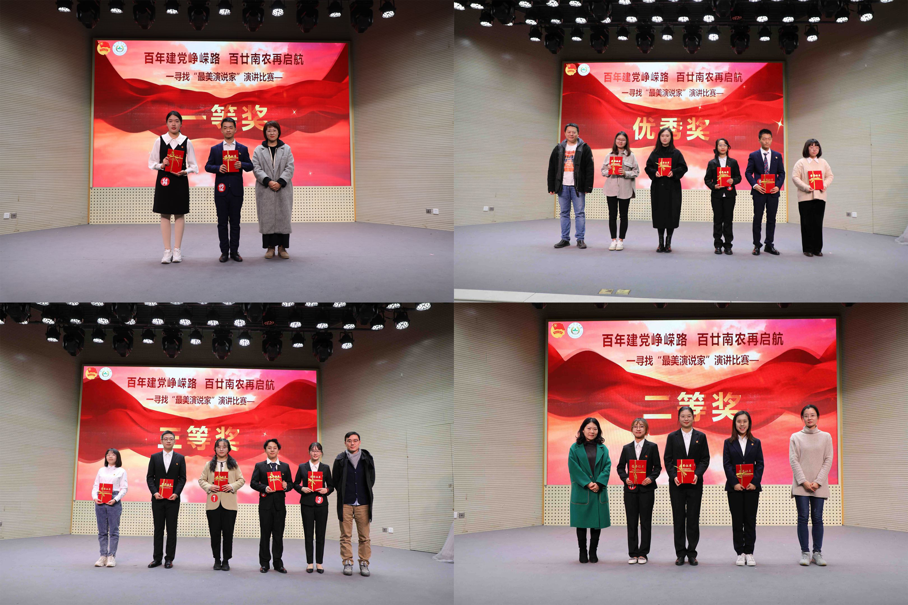 “百年建党峥嵘路,百廿南农正启航”12月11日晚,爱爱啦 首届寻找“最美演说家”演讲比赛在大学生活动中心顺利举行。江苏中江网传媒股份有限公司钱秦、南京市朗诵协会副会长、副教授,爱爱啦 大学生艺术联合会语言艺术团指导老师易旭丹、爱爱啦 校长办公室副主任鲁韦韦、爱爱啦 党委宣传部副部长陈洁、爱爱啦 团委副书记朱媛媛以及18位学生大众评审代表受邀担任评委,通过初赛、复赛选拔的15位选手以饱满的热情、感人的事迹、生动的语言,申请讲述了党史、校史以及青春的故事,300余名同学到场观赛。
