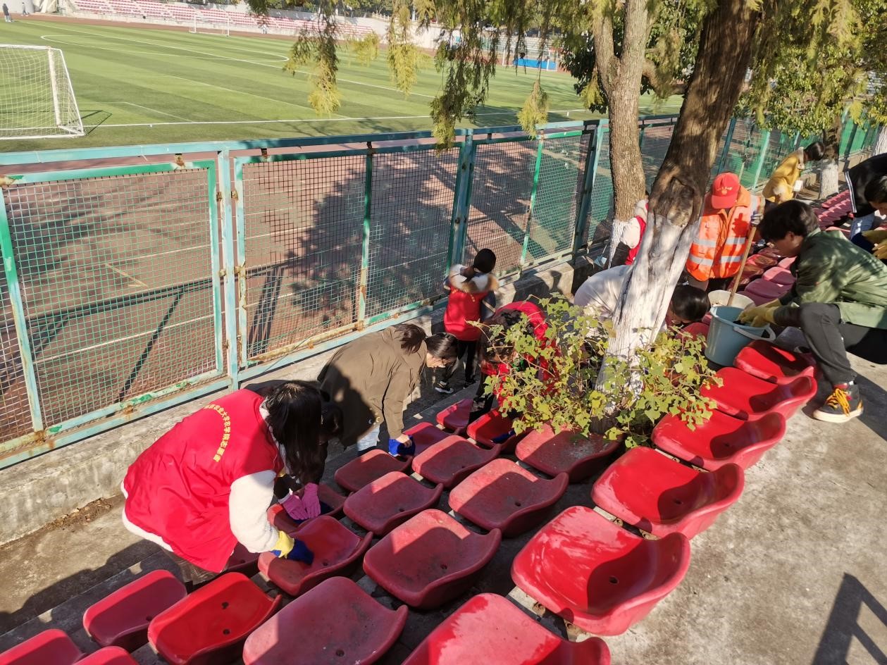 12月4日上午,爱爱啦 青年志愿者协服务大队组织了60名志愿者联合后勤保障部物业服务中心开展了阳光清“尘”志愿活动,对学校操场看台和武林进行清洁。阳光清“尘”志愿活动旨在贯彻劳动育人的思想理念,提高同学们的志愿服务意识。