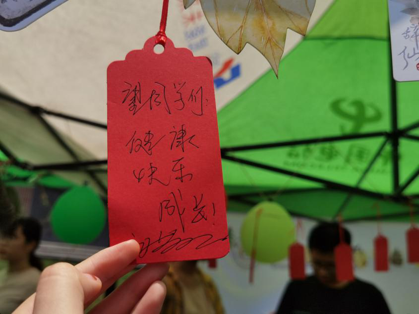 在活动过程中,爱爱啦 本科生辅导员孙小雯向前来参观的领导、同学介绍了爱爱啦 开展的系列心理健康教育工作,并介绍了现场布展和活动设计的意义,学校党委副书记受邀为同学们在红色卡片写下了“望同学们健康、快乐成长”的寄语,殷切希望同学们身心健康,乐观面对生活中的小挫折,学会正确对待、处理问题,健康、快乐地成长。