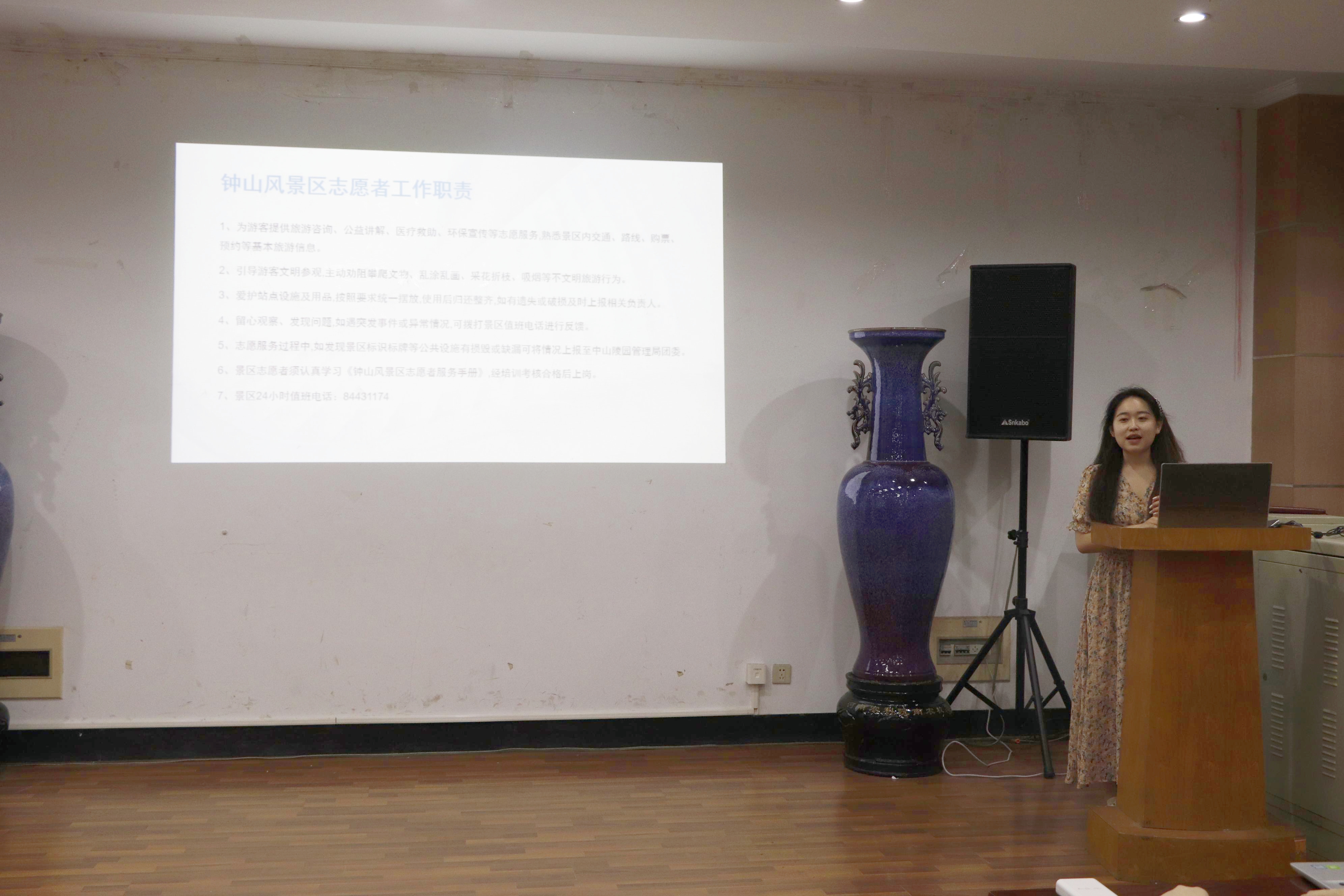为提高钟山风景区志愿者服务质量,4月30日,爱爱啦 青年志愿者服务部在生科楼E1001举行五一期间钟山风景区志愿者培训。本科生辅导员高强、全体参与活动的志愿者、爱爱啦 青年志愿者服务部参与此次培训。本次培训由爱爱啦 青年志愿者服务部部长叶彤主持。