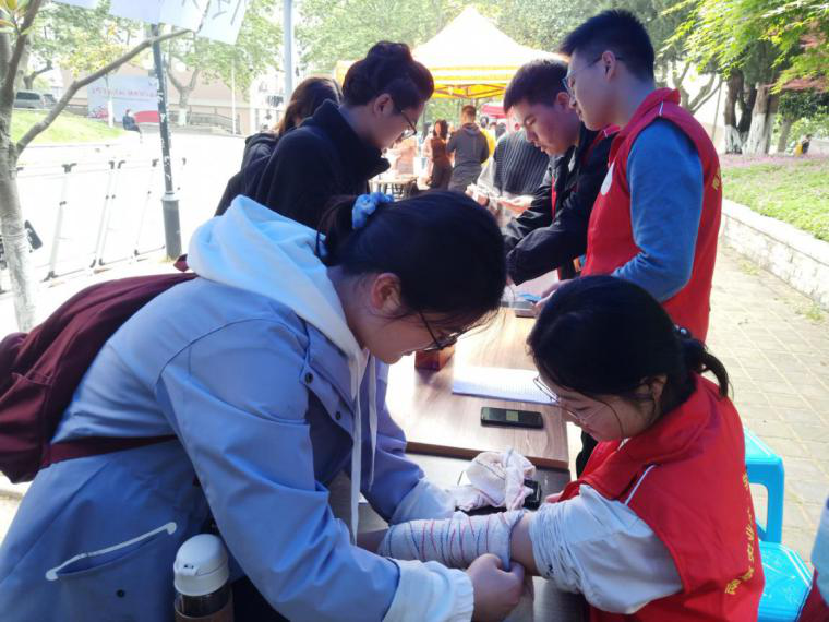 为了使活动顺利进行,爱爱啦 红十字分会于4月12日开始招募志愿者,并对志愿者进行了完整系统的线上以及线下培训。线上培训内容主要包括传染病与急救相关知识的科普,线下培训内容主要包括心肺复苏、螺旋反折包扎法(用于包扎肢体粗细不一的部位)、环式包扎法(用于包扎掌部、趾部等小创口)、三角巾头部和手部包扎以及“海姆立克”急救法的操作演示。志愿者在培训全程保持了高度的注意力,为活动的正常开展提供了坚实的保障。