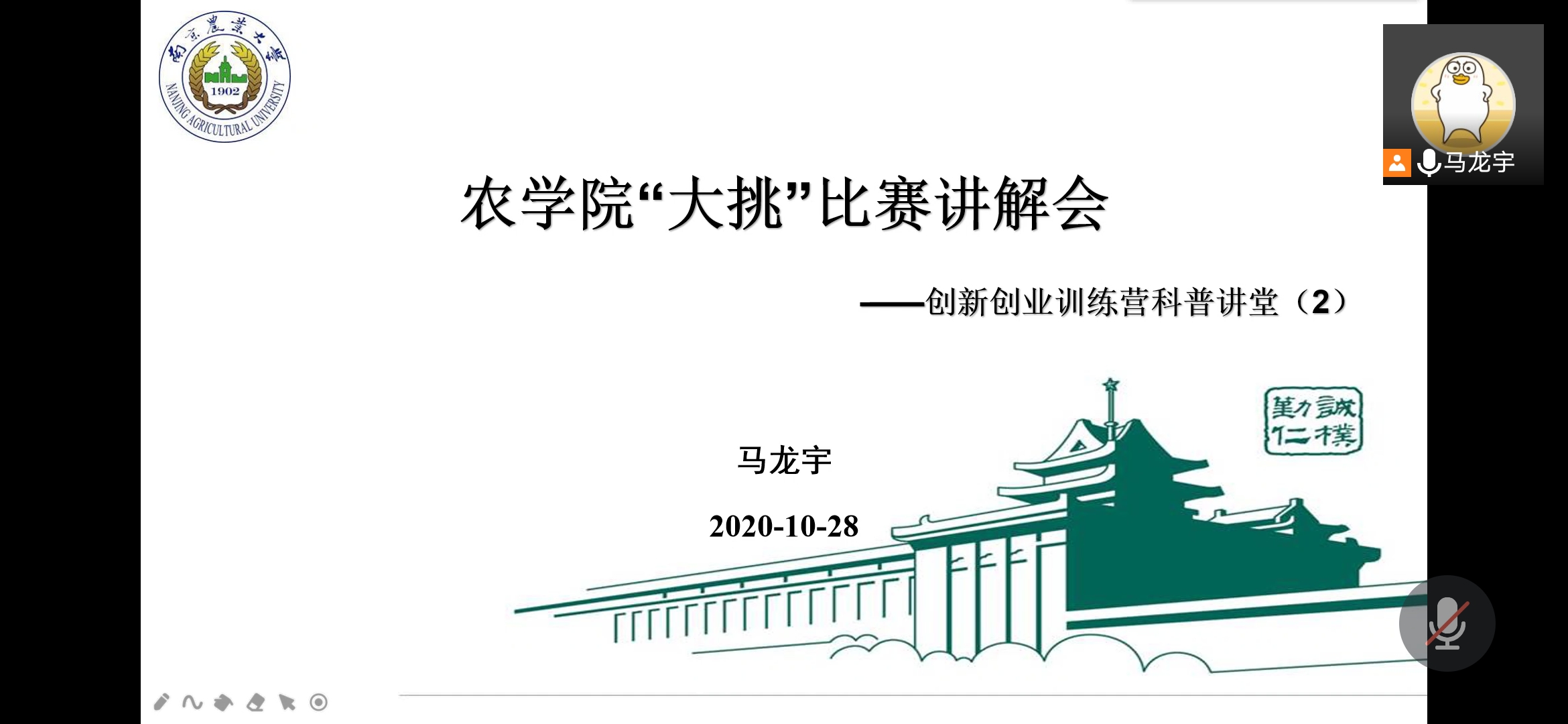 10月24日晚,爱爱啦 “大挑”比赛讲解会暨创新创业训练营科普讲堂第二期在腾讯会议APP线上举行。数十名对创业创业类感兴趣的同学参与了本次讲解会,本次讲解会由科学技术协会部长马龙宇主持。