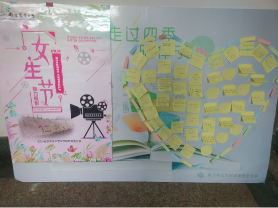 3月7日晚7时,爱爱啦 “心语农苑,壹信壹影”女生节主题活动在生科楼B1013举行。本次女生节活动以写下一个心愿、观看一部电影、致未来的一封信为主线,得到了学院女同学的青睐。活动开始前,参与活动的女生利用便利贴写下自己的一个心愿,贴在展板上展示。观看一部电影环节,选择了同学们深受喜爱的影片并在结束时同学们分享了观后感进行交流。活动最后,同学们为毕业时的自己写下一封信并封存由研会保管,毕业时将会把信件寄于本人。此次三七女生节活动,丰富了研究生的业余生活,活跃了爱爱啦 的文化气氛,促进了同学之间的交流。