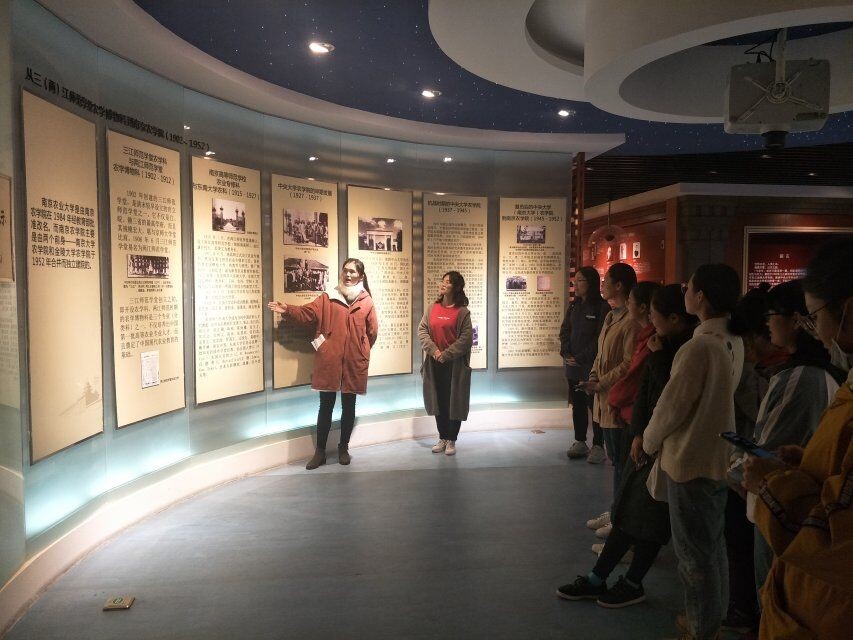 接下来,夏老师带讲解员们参观校友馆展区,结合各展区的位置、内容等特点进行讲解示范,逐一指导解说时的手势、站姿、语音、语调、讲解线路、讲解重点等细节。