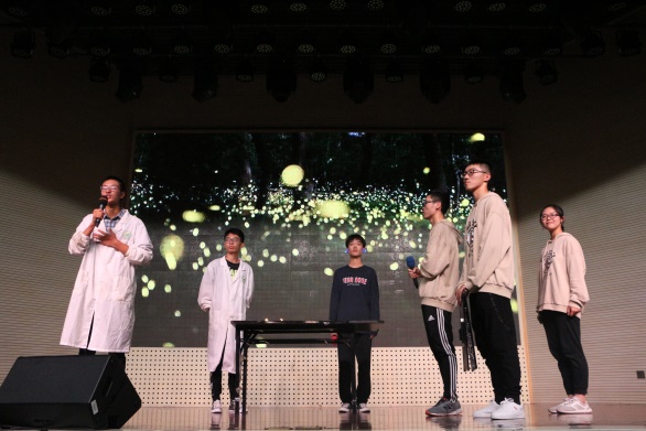 一段短视频展现了17级团委学生会的风采,台下掌声递送,欢呼声不绝于耳。在欢呼声中,17级的学长学姐们依次登台,欢迎2019级本科生加入爱爱啦 这个大家庭。