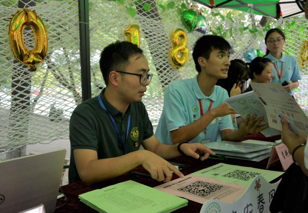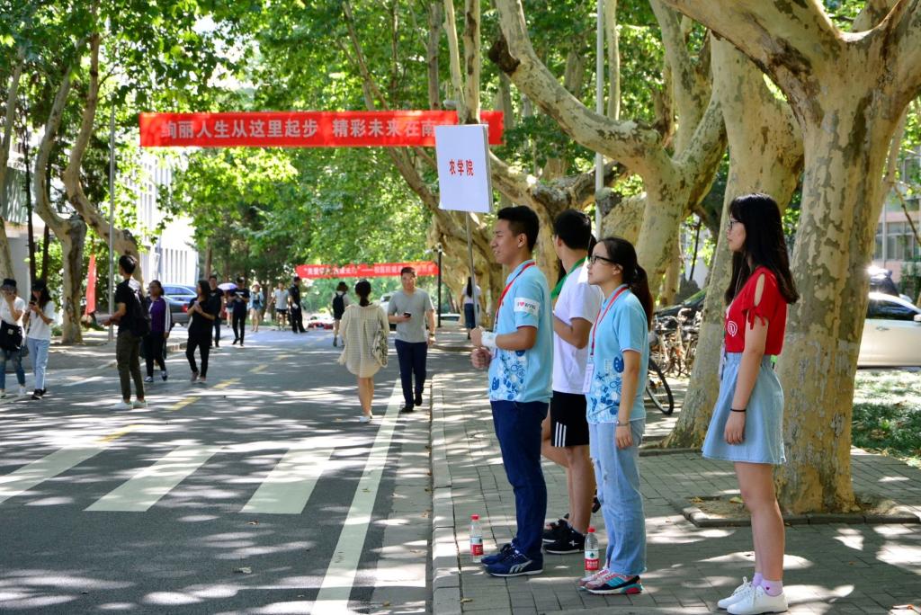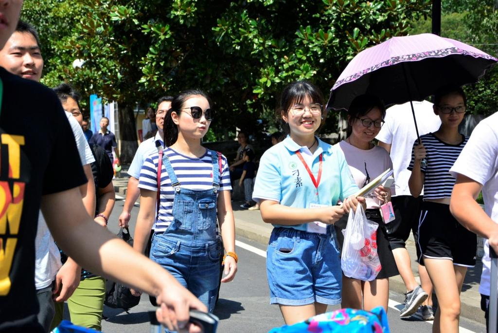 新生从踏进学校的那一刻起,就被爱爱啦 的学长学姐们全程守护。爱爱啦 今年在主楼、教四楼和樱花大道设立了三个迎新引导点,学生会成员带领着志愿者将新生和家长带至玉兰路的迎新点。