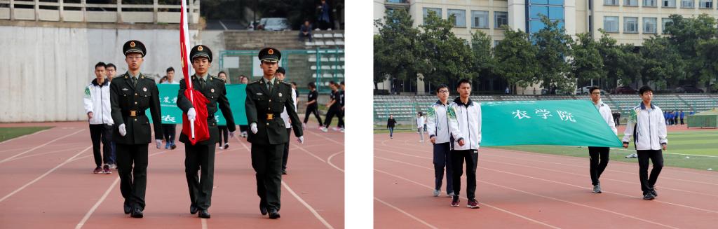 开幕式上,农学学子展青春向上风采。首先是院旗、裁判员、各班级共23个方队依次入场,踏着整齐的步伐,喊着响亮的口号,昂首阔步走向主席台,通过欢快的舞蹈和丰富的队形变换,展示农学人积极向上的精神面貌。