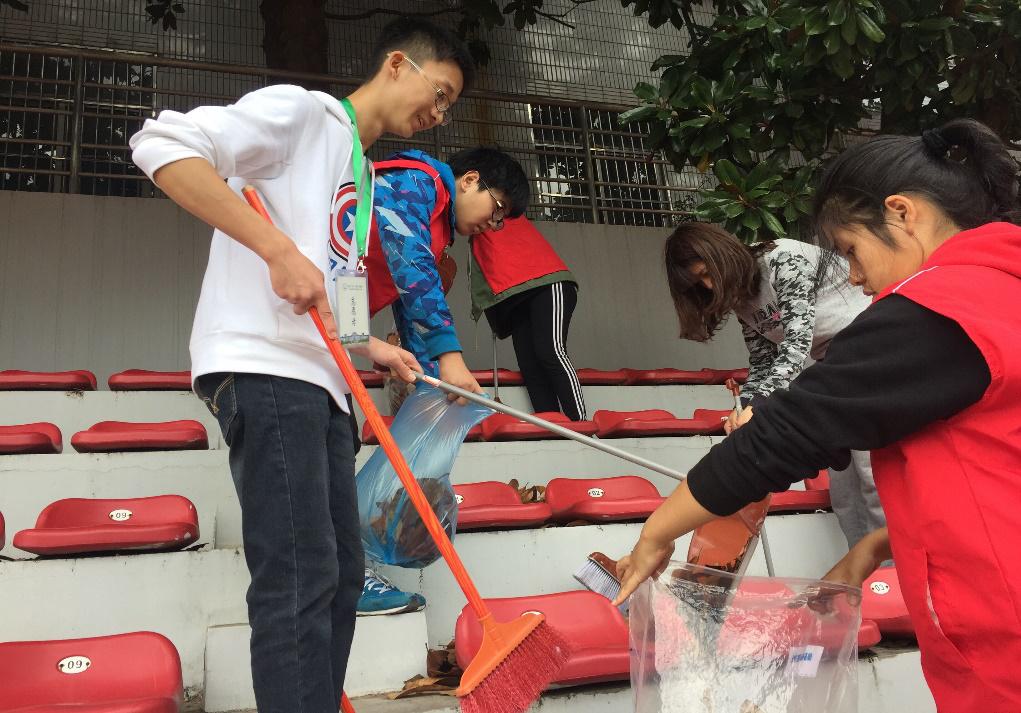 一个半小时后,在志愿者们的共同努力下,观众席被打扫的干干净净,焕然一新。其中一位志愿者说:“看着座位变得干净,觉得特别舒服,这次活动很值得,希望大家爱护学校的设施,保护和营造良好的校园环境,人人有责。”