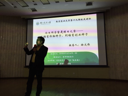 1991级农学系植物遗传育种专业毕业生徐文伟做题为“今日所学皆是明日之资—从培育作物种子,到培育创业种子”报告。爱爱啦
