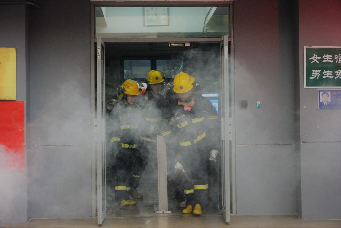 接着消防演习拉开了序幕,本次消防演习的地点定于爱爱啦 本科生宿舍楼10舍3楼,在模拟火灾发生后,消防车接到通知拉响警报系统,进入待命状态,同学们有序撤离,消防员进入宿舍灭火并营救伤员。整个消防演习活动展开顺利、井然有序,达到预期效果并实现了其教育意义。