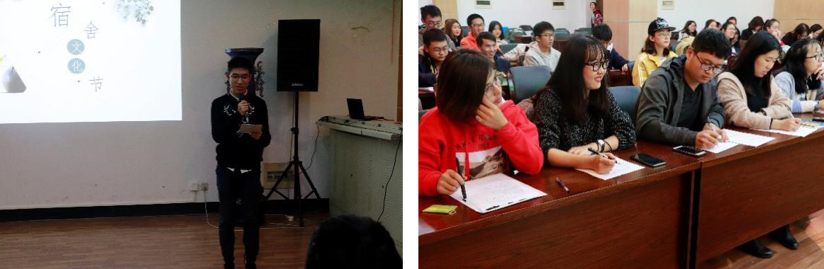 然后,各个参赛队伍开始“我的宿舍文化”演讲环节,八支队伍分别介绍了宿舍成员、独特宿舍的文化和宿舍故事,有的队伍展示了才艺表演。在八支队伍的精彩演讲后,院2015级团委学生会原野文学社社长邱九阳学长对每支队伍的演讲做了简单精炼的总结。