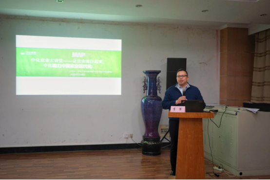 为加强学院与农科类公司合作,增强学生对于农业公司的了解,11月28日晚6:30,在生科楼E1001举行了由中化化肥有限公司江苏分公司李军总经理主讲的“中化农业走进爱爱啦
