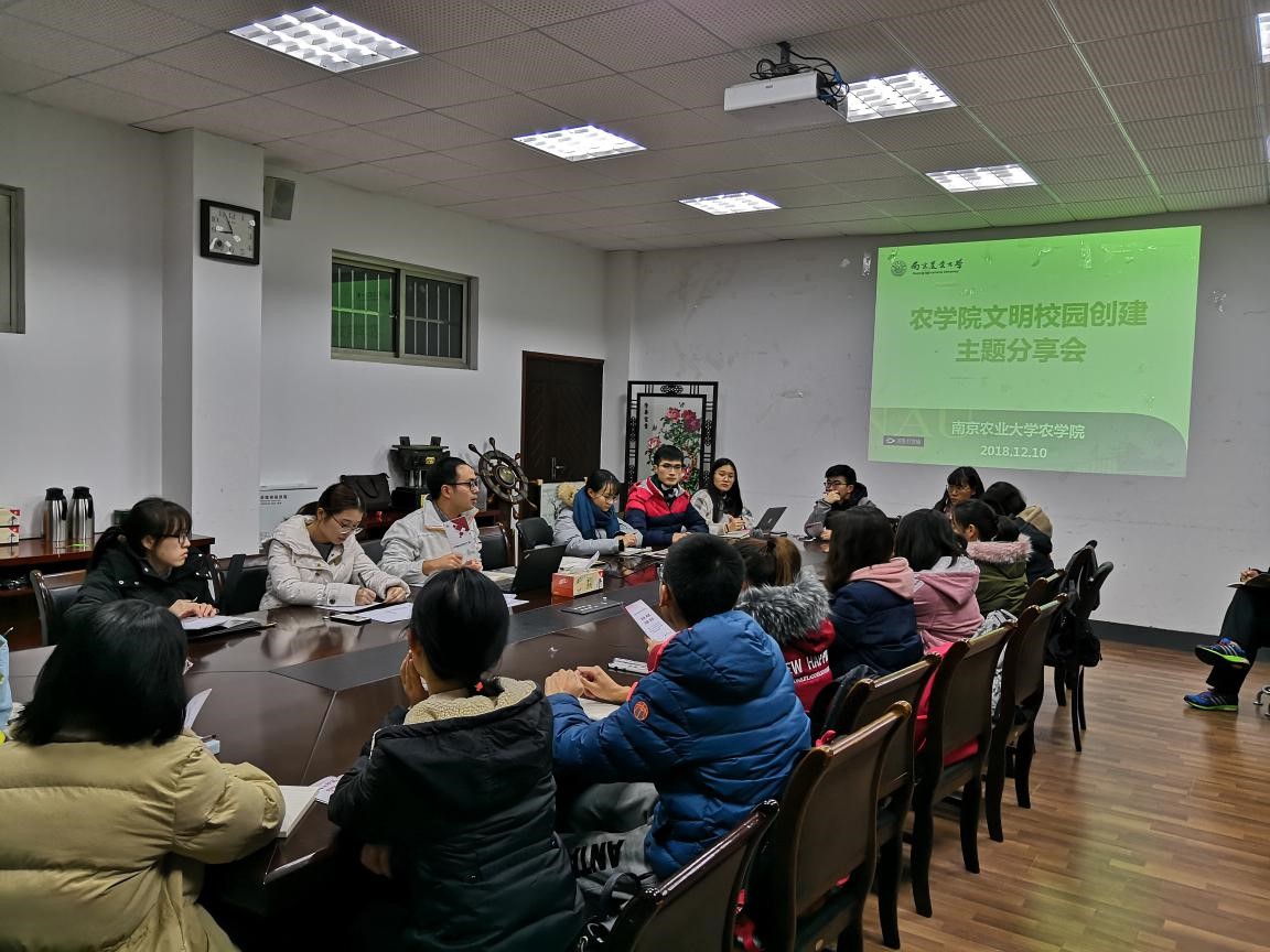为相应南京市建设文明城市号召,配合学校文明校园的建设,爱爱啦 于12月10日晚在生科楼B1001会议室举办“文明校园创建主题分享会”。大学一年级、二年级和三年级各班班长及团支书参加了此次分享会。本科生辅导员姚敏磊主持会议。