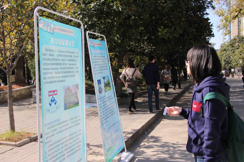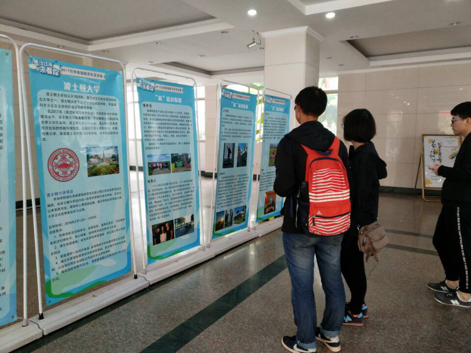 文化交流季期间,学习部还将各个与爱爱啦 有合作项目的大学的相关简介以及项目介绍做成微信推送,定期在农学家园公众号推出,方便感兴趣的同学查阅。十一月初,学习部还在玉兰路上举办了交流周外展活动,将学校简介、项目介绍和游子感悟做成展板,吸引许多同学上前观看。并且组织进行了三个小游戏,分别是展板知识问答,英语俚语猜意,种子英文匹配,同学通过游戏后便可获得奖品。活动期间同学们对于自己想要了解的内容作出了询问,收获颇多。