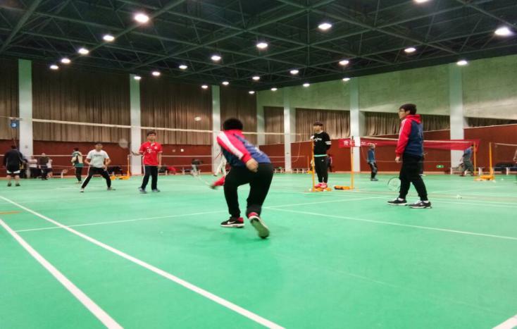 下午18:00,羽毛球比赛在校体育馆准时开始。由于场地原因,本次比赛只设团体赛,采取5场3胜15制;参赛人员同样按照专业和班级分为七个由直系学生组成的联队。