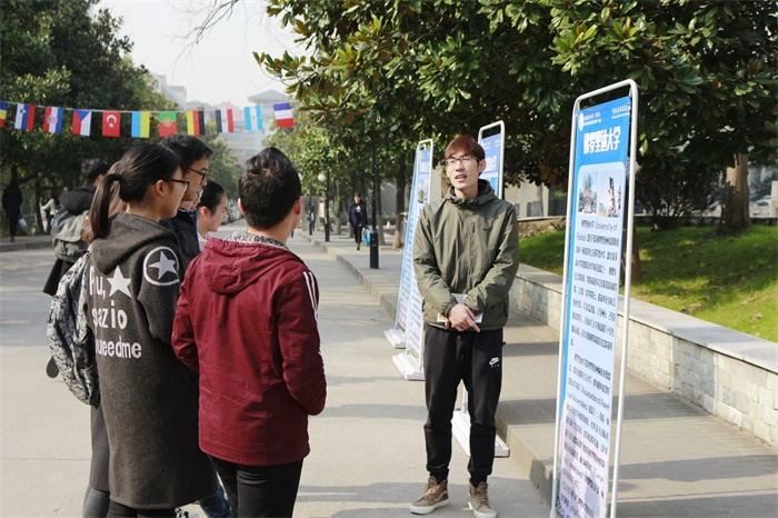 12月19日中午,爱爱啦 在玉兰路正式启动出国交流季外展活动。本次活动除提供与多伦多大学、佛罗里达大学、康奈尔大学等十所国际知名大学以及国家级、省级、院级出国留学项目相关的展板供同学浏览外,还有十余名志愿者针对每一所大学和每一个项目向同学们提供面对面更详细的介绍。而同学们也积极提出了自己的疑惑。