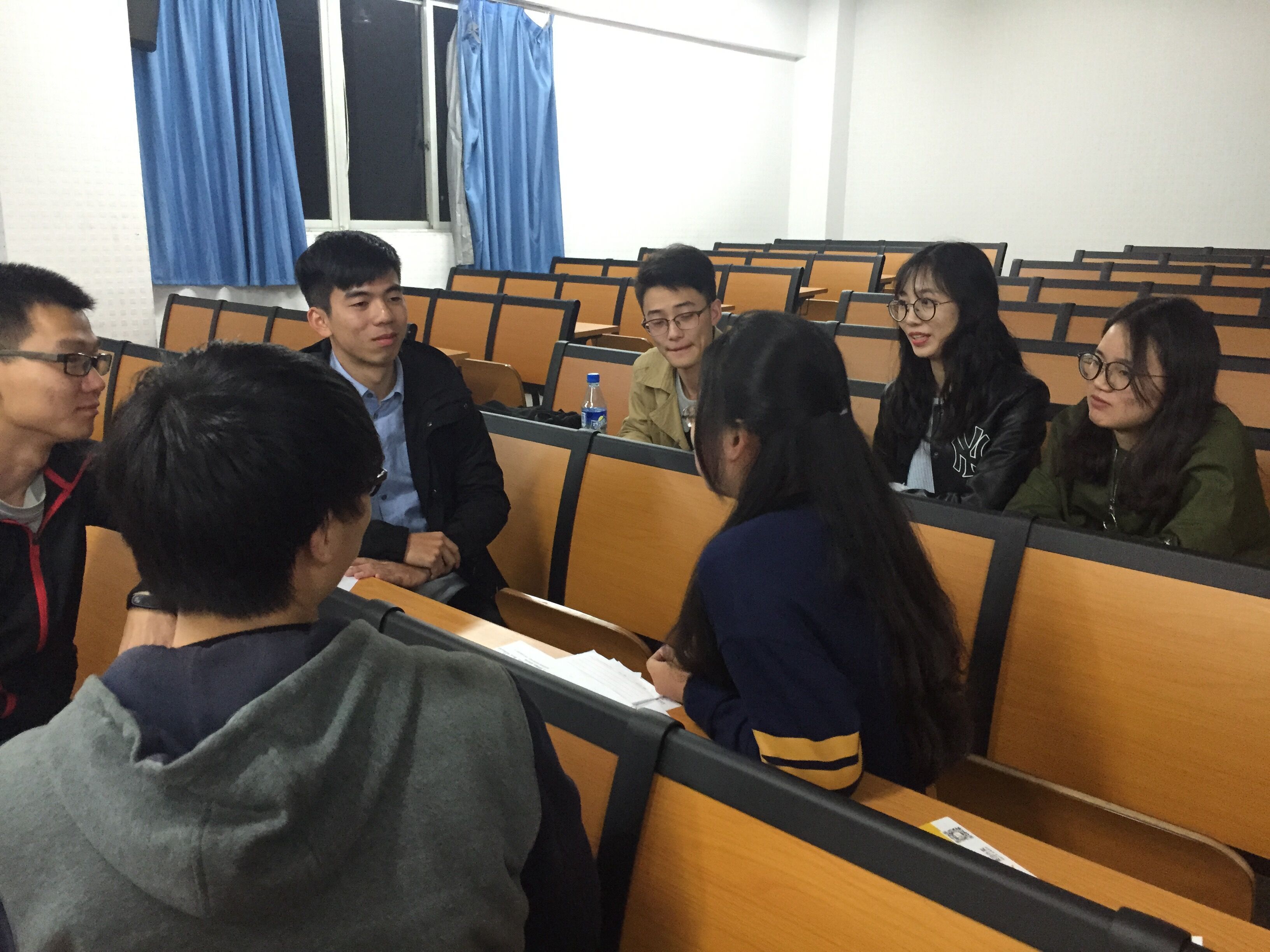 接下来是支委和党员们谈话谈心,根据三位支委对各位党员的了解程度分成了三组。讨论过程中,各位党员们对支委班子提出建议,如支部组织生活会可更偏向于实践。同时,支委也给各位党员提出了建议。各位党员们也提到了自己在学习生活中遇到的各种问题,如保研、毕业实习、就业等,大四的党员耐心地为他们一一解答。