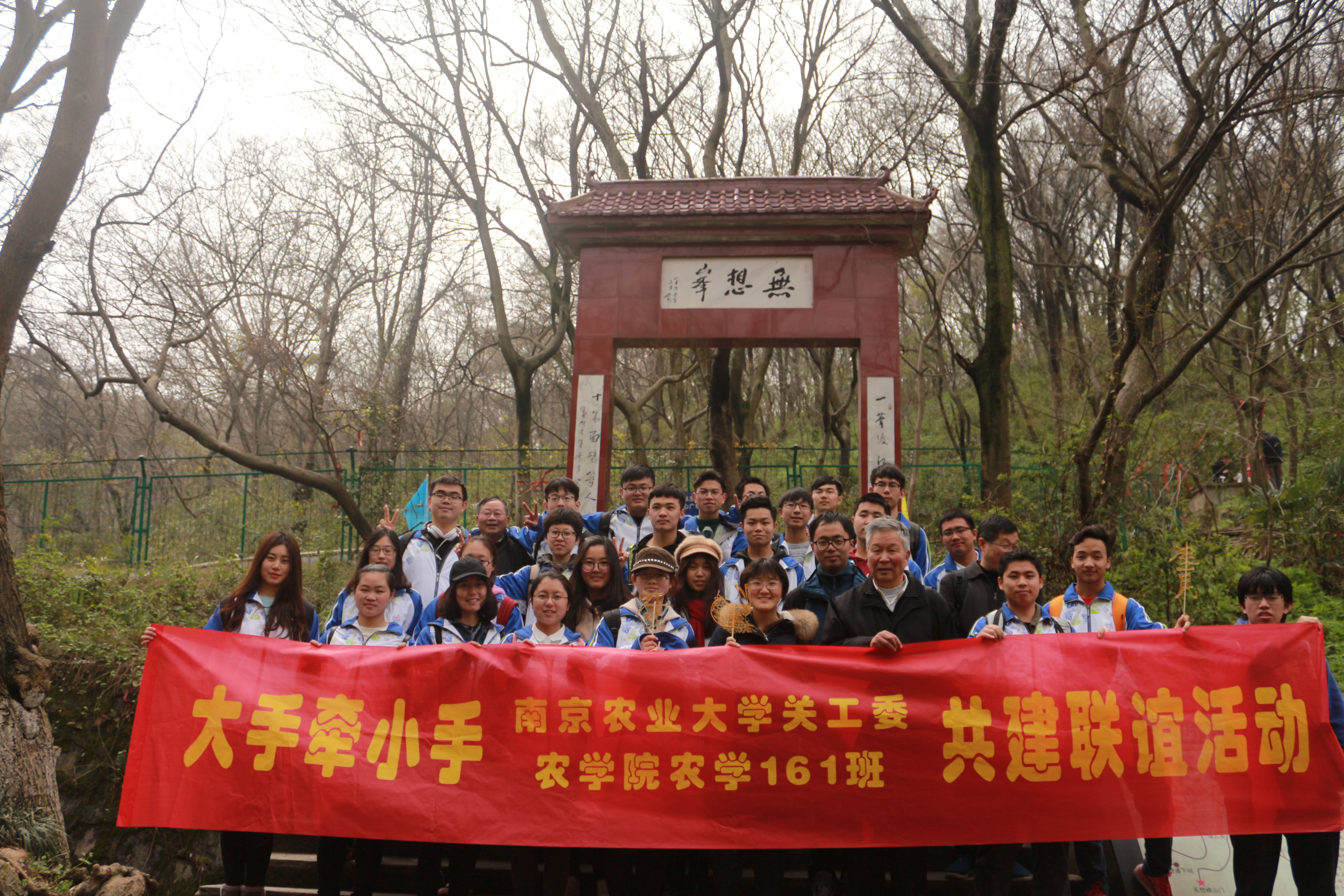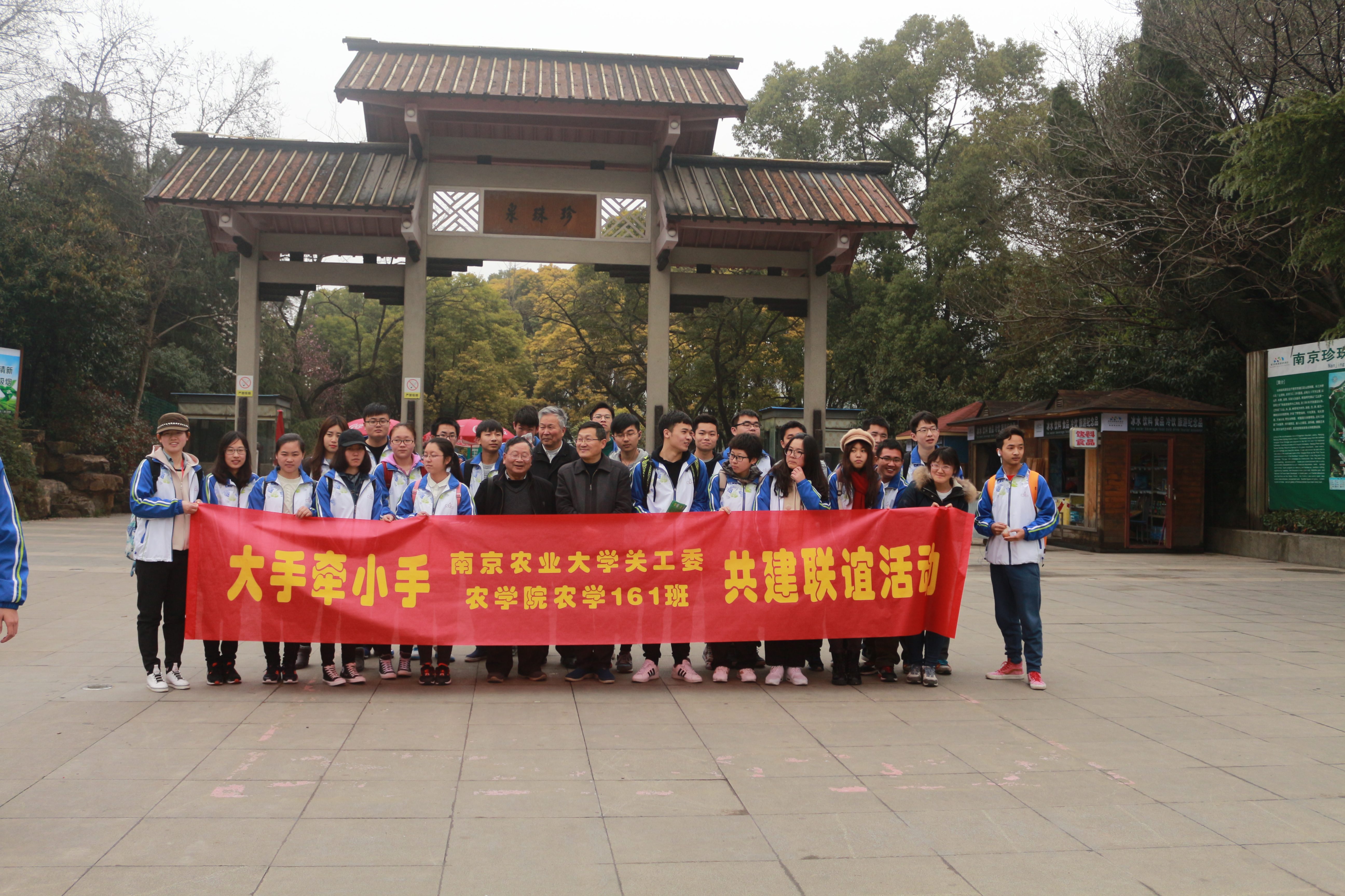 3月25日,农学161班邀请校关工委王保荣老师、吴明先老师和张鲲秘书长参加了班级主题环保踏青活动,本次踏青以“大手拉小手”为主题,以南京浦口区珍珠泉景区为目的地,沿途倡导绿色环保,同学们和关工委老师均乘坐公共交通前往。老教师们在同学们的陪伴下漫步在景区里,时而观赏野生动物园里的动物表演,时而欣赏秀丽的初春美景,各项活动开展顺利。