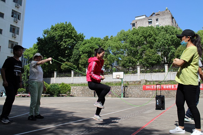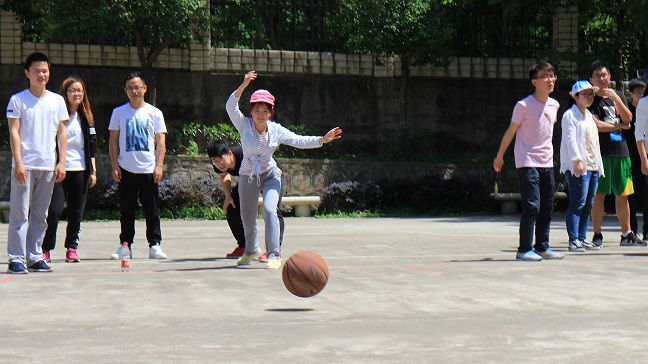 本次趣味运动会围绕着“跃动青春,活力飞扬”的主题,设置了六个趣味运动项目,分别是定点投篮、猛龙过江、无敌风火轮、乒乓接力、室外保龄球、合力写字。