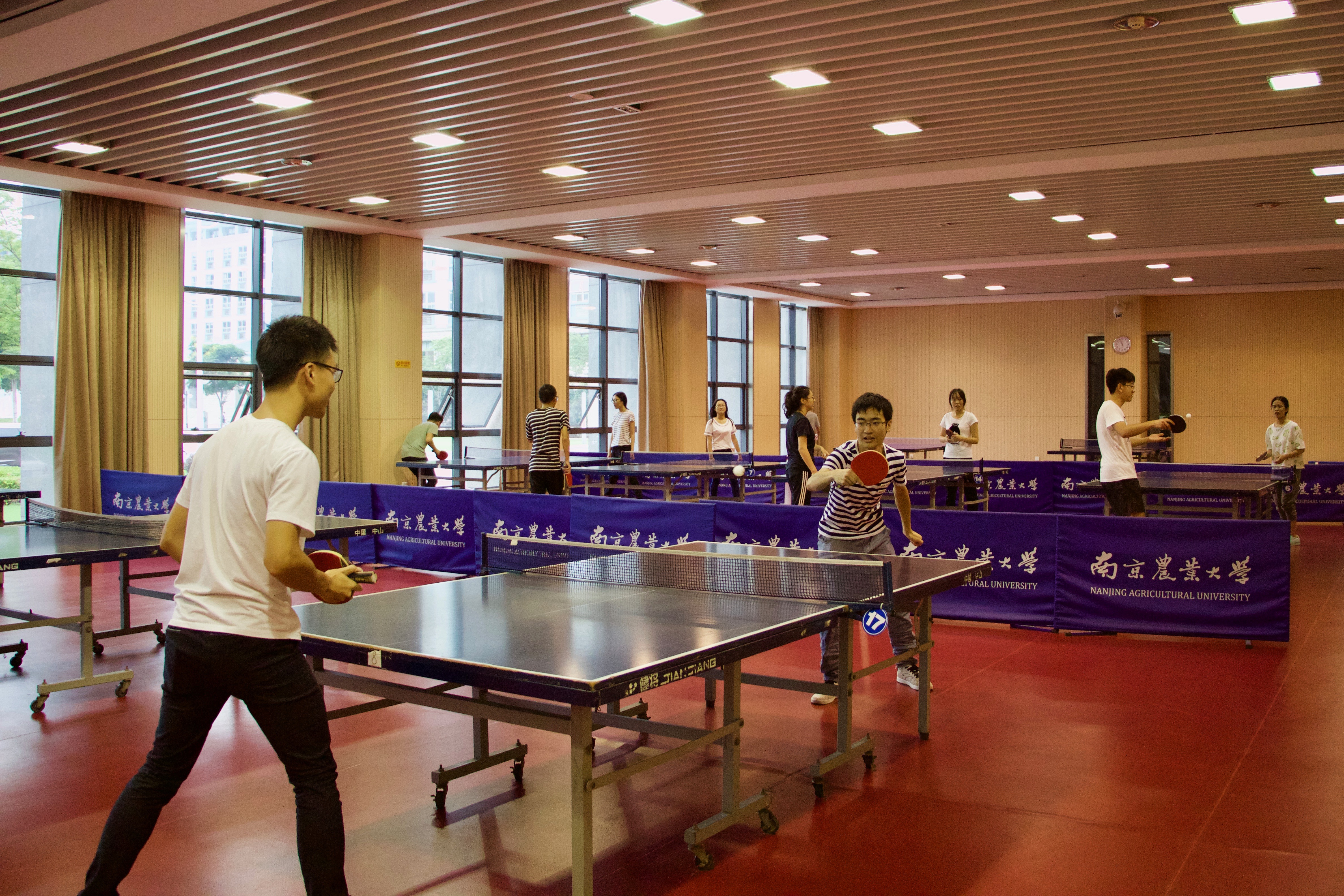 9月2日全天进行了素质拓展训练。上午,在新体育馆里举行了乒羽比赛,本次比赛分为羽毛球双打和乒乓球单打。赛前进行了组队和抽签,经过两个小时的激烈角逐,比赛分出胜负。下午,全体成员集合前往博爱园,分为两组进行了撕名牌大赛。游戏不仅增加了培训的趣味性,而且增进了学生会成员的感情交流,培养了同学之间的默契。最后,大家在会议室对本次培训进行了总结和分享,学生会成员畅所欲言,各抒己见,交流了在本次干部培训中的收获体会。