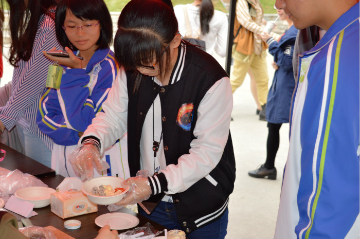 活动分为知识问答和参与者自己动手制作水果沙拉两个环节。知识问答又包括三部分:抽题问答,辨别粮食以及搭配食物。一系列内容多样的问答题,对同学们进行了粮食知识的科普。游戏环节环环相扣,吸引了一批又一批的同学,尤其在制作沙拉环节参与者都表现出了极大的兴趣。大家一起参与制作水果沙拉,并享受这个制作沙拉过程。