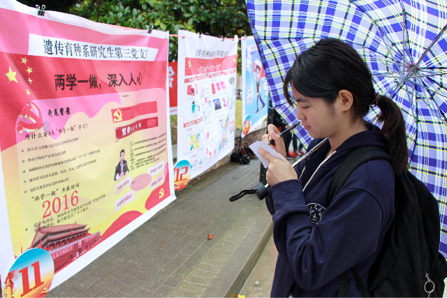 活动中不同党支部精心设计的作品赢得了同学们的一致好评,他们的作品以漫画的生动形式向大家展示了“两学一做”的学习内容,同学们也通过更加多样化的方式学习了“两学一做”的相关知识。