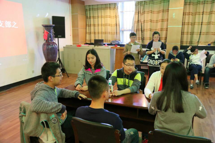 首先,由张馨月与雷康琦介绍了本次活动的内容与目的,对话幽默,点燃气氛。然在韩子旭的主持下开始了第一环节——红歌接唱。提前抽签分好的队伍之间竞争激烈,一些耳熟能详的红歌大家都能朗朗上口,如《没有共产党就没有新中国》、《我爱北京天安门》等。在大家积极参与的热情氛围下,杜同阳与刘艺带领大家进入到第二环节——“60s不NG”演绎电影经典桥段,如《建党伟业》、《建国大业》等四部影片。随着大家严肃又幽默的演技活动到了高潮部分,笑声不断,并一起观摩了《那年那兔那些事儿》的精彩片段,感动依在。活动结束,我们评选出表现最佳队伍,给予了奖励。