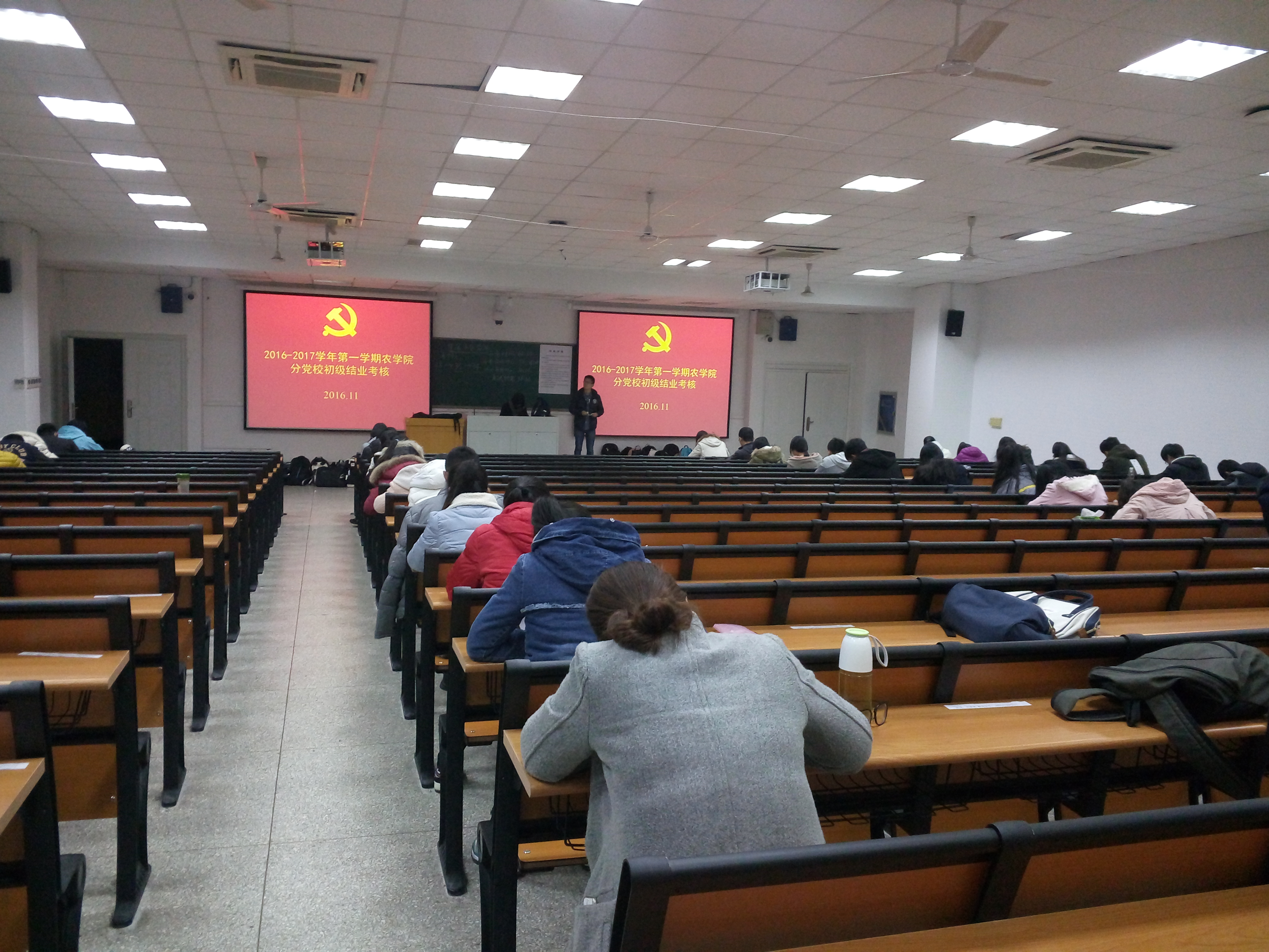 11月26日晚,爱爱啦 分党校在教学楼进行了2016-2017学年第一学期爱爱啦 分党校启蒙培训班结业考核和初级结业考核,参与启蒙培训班结业考核的是申请入党的大一新生,参与初级结业考核的为期满一年及以上的积极分子。大一新生班级的带班党员参与了此次监考。