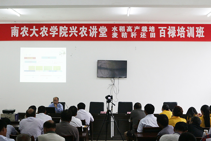 7月13日下午,爱爱啦 于百禄镇举办兴农讲堂。就水稻高产栽培和小麦秸秆还田进行科普讲座。爱爱啦 李刚华教授及王保君硕士主讲。百禄镇种粮大户及各专业性合作社负责人参与讲座。