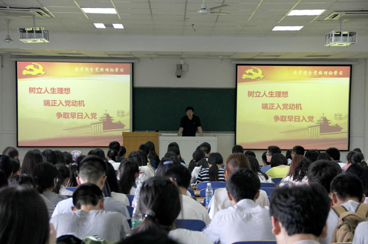 5月20日下午四点,爱爱啦 分党校理论教学在教学楼C301进行,授课者为爱爱啦 党委副书记庄森,爱爱啦 大一学生及入党积极分子、预备党员和党员参与了本次党课学习。