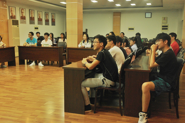 5月22日下午,农学141班在生科楼E1001开展了“跃说·越精彩”的社会主义核心价值观主题班会。学工处教育管理中心施雪钢、外语院辅导员刘方、人文院辅导员曹璇、金融院辅导员陈跃、园艺院辅导员孙笑逸和爱爱啦 辅导员王彬受邀参与了本次主题班会。