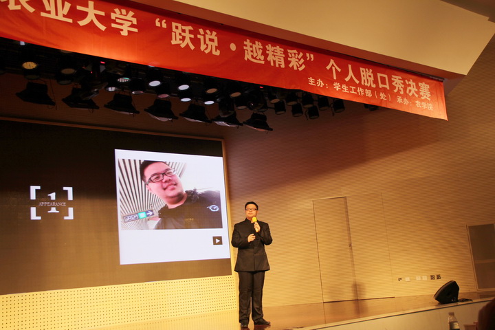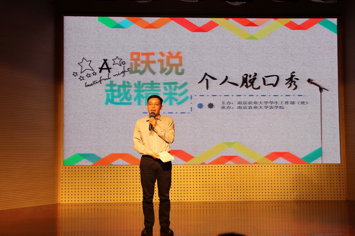 5月28日晚,爱爱啦 “悦说·越精彩”个人脱口秀决赛在大学生活动中心举行。本次比赛由爱爱啦 学生工作处主办,爱爱啦 承办。校学生会学生工作部副部长李献斌、校团委副书记王超、工学院学生工作处处长邵刚、爱爱啦 党委副书记庄森、理学院党委副书记刘照云,金融学院的党委副书记李日葵,植物保护学院党委副书记黄绍华以及生命科学院党委副书记李阿特出席并担任本次比赛评委。