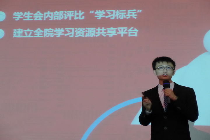 下午两点,大会准时开始。现任学生会主席袁昊先总结了过去一年爱爱啦 学生会获得的成就,对大家的工作表示深深的感谢。并对即将成立的新一届团委学生会送上祝福。