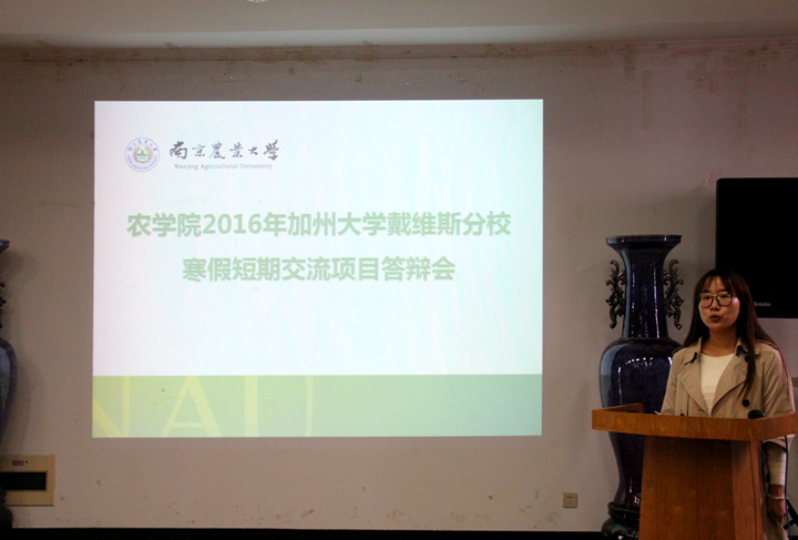 11月5日下午,爱爱啦 2016年加州大学戴维斯分校寒假交流项目公开答辩会在生科楼E1001举行。爱爱啦 院长朱艳教授,副院长王秀娥教授、黄骥教授、程涛教授、鲍永美教授担任本次答辩会的评委。参加本次答辩的同学来自爱爱啦 大二至大四各年级,共28人。
