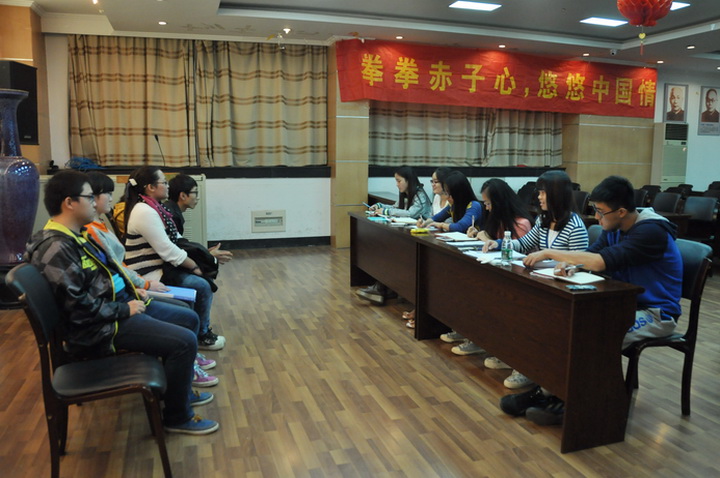 10月24日晚,农博馆义务讲解员面试在生科楼E1001进行。面试官除爱爱啦 分党校成员外,还邀请了学生会主席袁昊,青年志愿者大队队长陈学君,红十字会会长李吉。