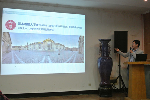 交流会开始,留学于丹麦哥本哈根大学的李向楠博士首先介绍了丹麦的基本情况,分享了在丹麦游学的经历。然后,李博士介绍了哥本哈根大学的基本情况,并对哥本哈根大学院系结构做了详细的介绍,让大家对申请国外大学有了深入了解。接着李博士给大家分享了自己的课题情况,并和在座同学进行互动交流。此外,他还针对丹麦的生活情况,包括费用、美食、住宿、社会活动等做了具体介绍。最后,李博士总结了自己的留学感受,并结合自身经历,提出三点重要的建议:抓住机会,积累人脉;多学技术,与人交流;眼光敏锐,追踪信息。