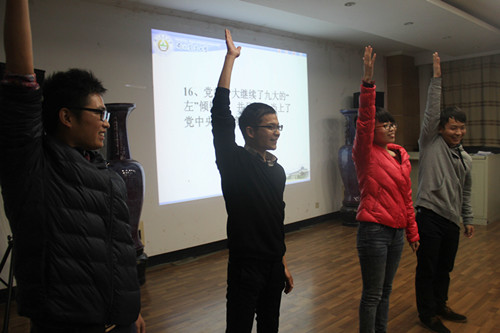 为庆祝党的十八届四中全会顺利召开,呼吁爱爱啦 研究生党员积极融入到党的组织生活,11月25日晚7点,爱爱啦 研究生党支部在生科楼E1001组织各个支部进行了一次有趣的党史知识竞赛。