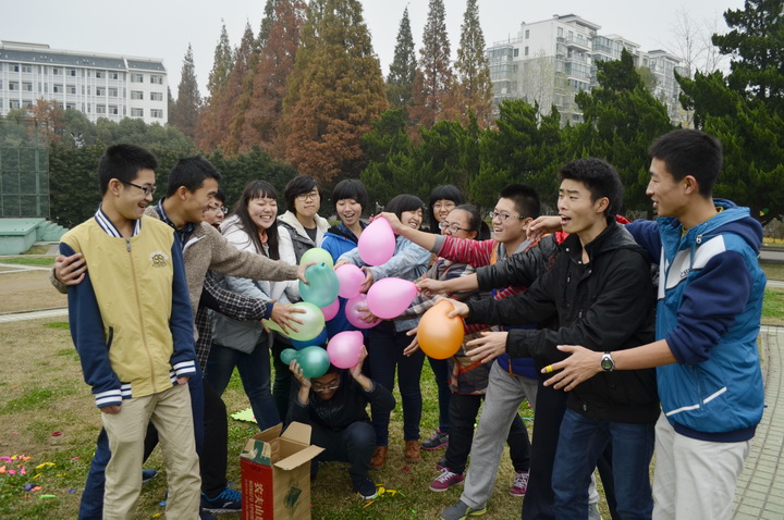 活动开始前,生活部部长李芳芳简要介绍了活动举办的主旨和注意事项,并鼓励大家在竞争中增进交流,促进友谊。接着,各队喊出了自己的队名和口号来表明争夺冠军的决心。8支队分成四组,被带到指定位置由活动志愿者向大家介绍活动流程和内容,此次活动分为四个模块:成语猜猜猜,我爱记歌词,过河拆桥和六位一体。丰富的活动形式,严格的比赛规则,加上同学们的竞争意识使得比赛场地弥漫着紧张的气氛。但每个队各有千秋,方天组在“过河拆桥”环节的过关方式让人拍手叫绝,寝室兄弟间的相互支撑得到完美体现;谁说女子不如男,张馨月宿舍在“六位一体”项目中勇爆20多个气球,快,狠,准,成为了她们取得骄人成绩的法宝。