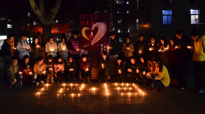 1937年12月13日,侵华日军攻陷中国南京,在南京进行了一场惨绝人寰的屠杀,30万中国同胞被残忍杀害,而今,77年已过,硝烟已逝,历史不忘。他们手持烛光,闭上双眼,在纪念日前夕为在南京大屠杀中逝去的30万中国同胞默哀。勿忘国耻,珍惜当下,发奋图强,圆梦中华。