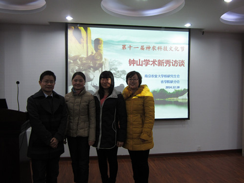 12月18日晚6点30分,由爱爱啦 研究生会主办,爱爱啦 研分会承办的第十一届神农科技文化节——钟山学术新秀访谈在爱爱啦 理科楼3楼C303报告厅举行。三位钟山学术新秀曹爱忠老师,赵志刚老师,刘蕾蕾老师参加了此次活动。