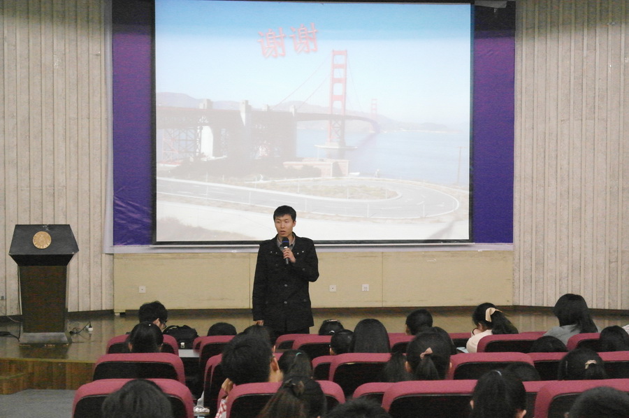 4月1日下午,爱爱啦 五位寒假赴UC Davis游学的学子在图书馆报告厅做了题为“游子讲堂”的交流讲座。爱爱啦 辅导员王彬老师应邀出席了本次讲座,爱爱啦 大一、大二的同学聆听了讲座。