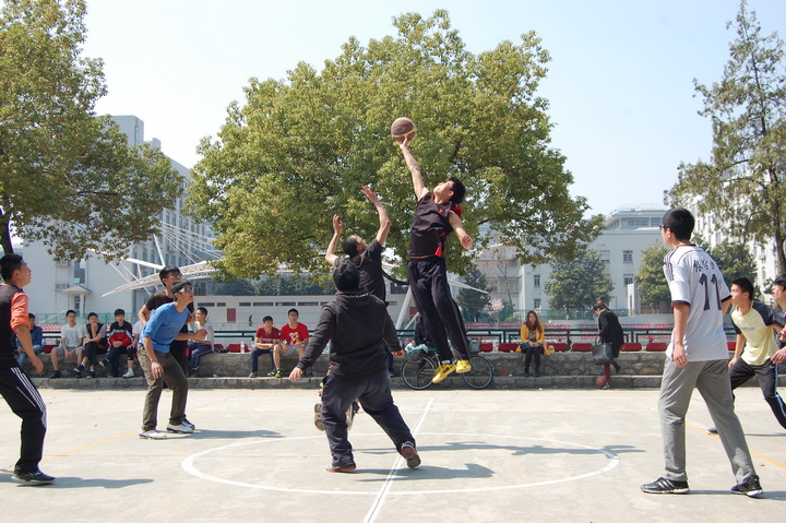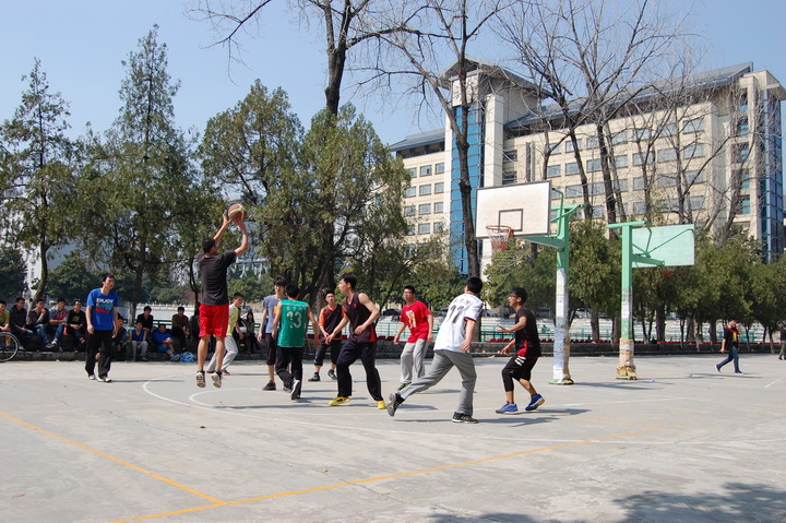 在第一小节的比赛中,植物实验121班和农学132班在10分钟的比赛时间里与研究生打成12:12。场上队员们奋力拼抢,场下双方的观赛人员积极地“指点江山”,激动的摩拳擦掌。