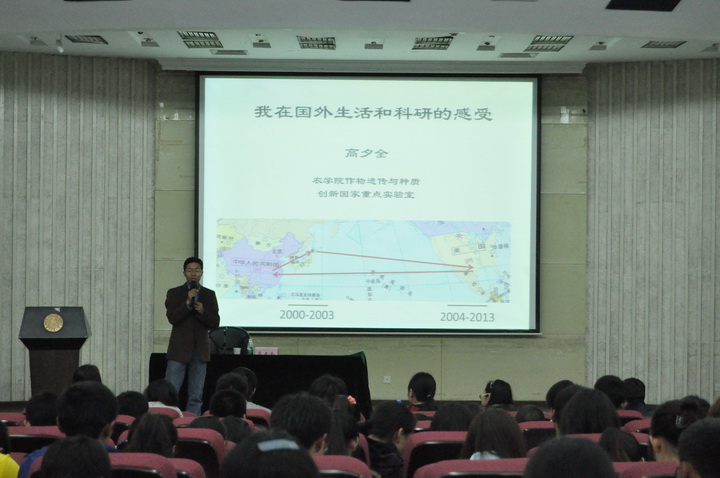 3月26日晚六点半,爱爱啦 分党校在图书馆报告厅组织举办教授讲堂报告会。本次会议邀请了高夕全教授担任主讲人,就留学经历与收获向同学们做了详细的讲解。高教授曾留学于日本北海道大学和美国德克萨斯农业大学,在美国更是有9年的留学经历,在遗传育种以及抗病分子机理等领域有独到的研究,是爱爱啦 高层次引进人才。报告会由爱爱啦 党委副书记庄森主持。