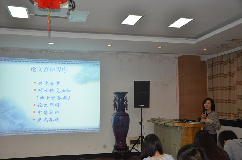 李雪琴首先就目前爱爱啦 硕士学位申请与论文答辩的相关流程以及注意事项,从论文答辩条件、论文答辩程序两个方面对应届硕士毕业生们进行了深入浅出的指导。此外,她还特别强调从2013年开始实施的论文查重环节,并在会上耐心介绍了博士生预答辩申请、硕士毕业抽检、申请学位等论文答辩的程序与相关具体要求。其后李老师对同学们提出殷切期望,即在把握时间走好答辩流程的同时,为研究生与博士生研究生涯画上完美的句号,最后她给在场同学送上了美好祝福。